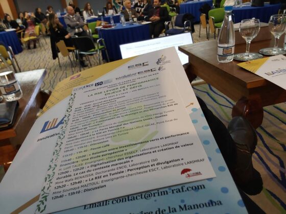 Les laboratoires LARIMRAF (de l’ESC de Tunis) et ISO (de l’ENCG Casablanca) ont organisé dans le cadre d’un projet commun et en collaboration avec l’association ASTURIMA une journée le 17 mars 2023 portant sur le thème « La RSE levier de performance: Enjeux et défis », et ce à l’Institut Arabe des Chefs d’Entreprises, les Berges du Lac.
