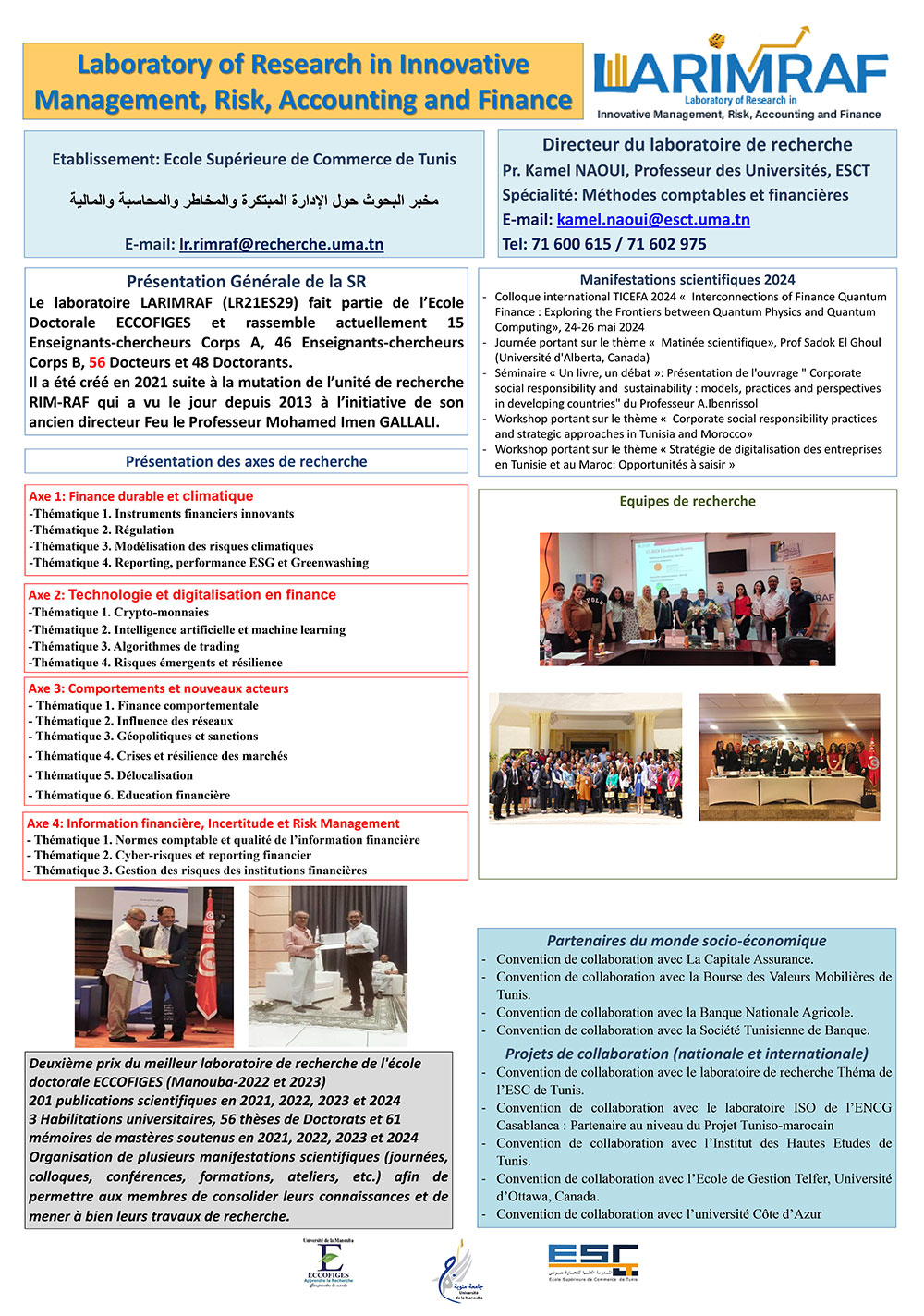 Le laboratoire LARIMRAF a participé à l’organisation de la journée du Partenariat et du Réseautage « Manouba Networking Day » dans sa sixième édition portant sur “La recherche collaborative au service de l’écosystème ”, et ce le 30 Avril 2025 au Campus Universitaire de la Manouba